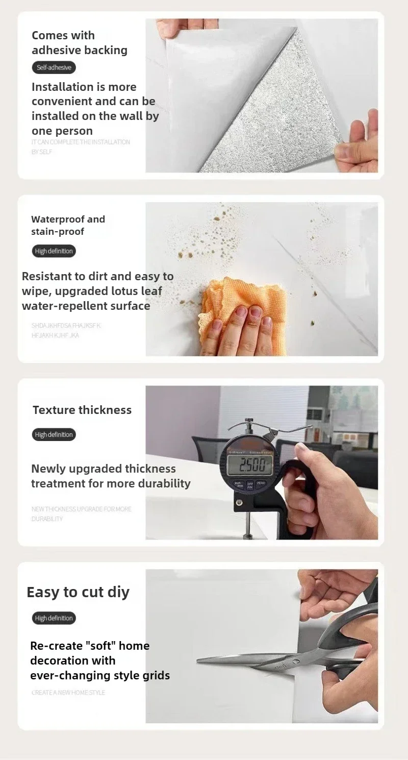 【Uso em diversos ambientes】 Os adesivos de azulejo podem ser usados ​​em qualquer superfície lisa e plana, como cozinha, quarto, banheiro, sala de estar, lavanderia, corredor, móveis, bancada, etc. Os adesivos de azulejo, fáceis de aplicar, darão à sua casa um visual único e moderno.